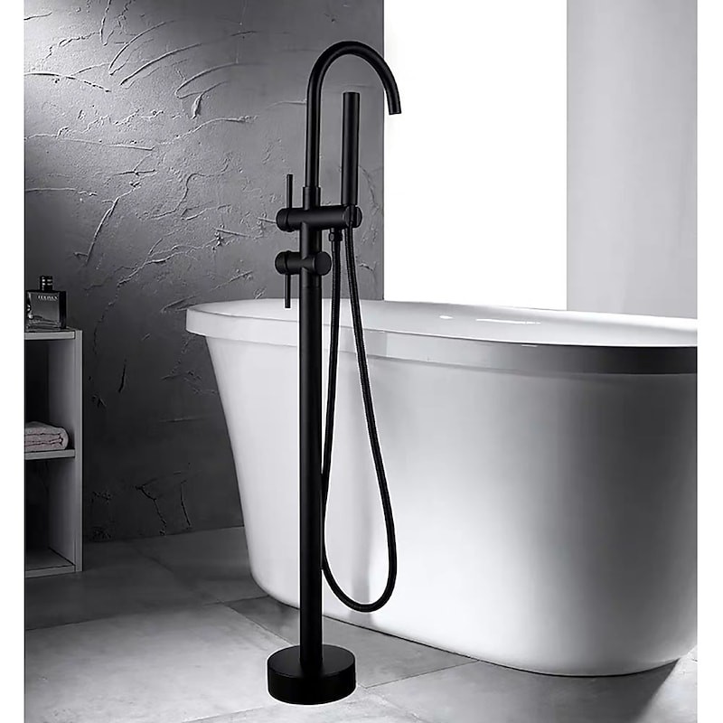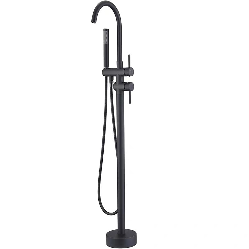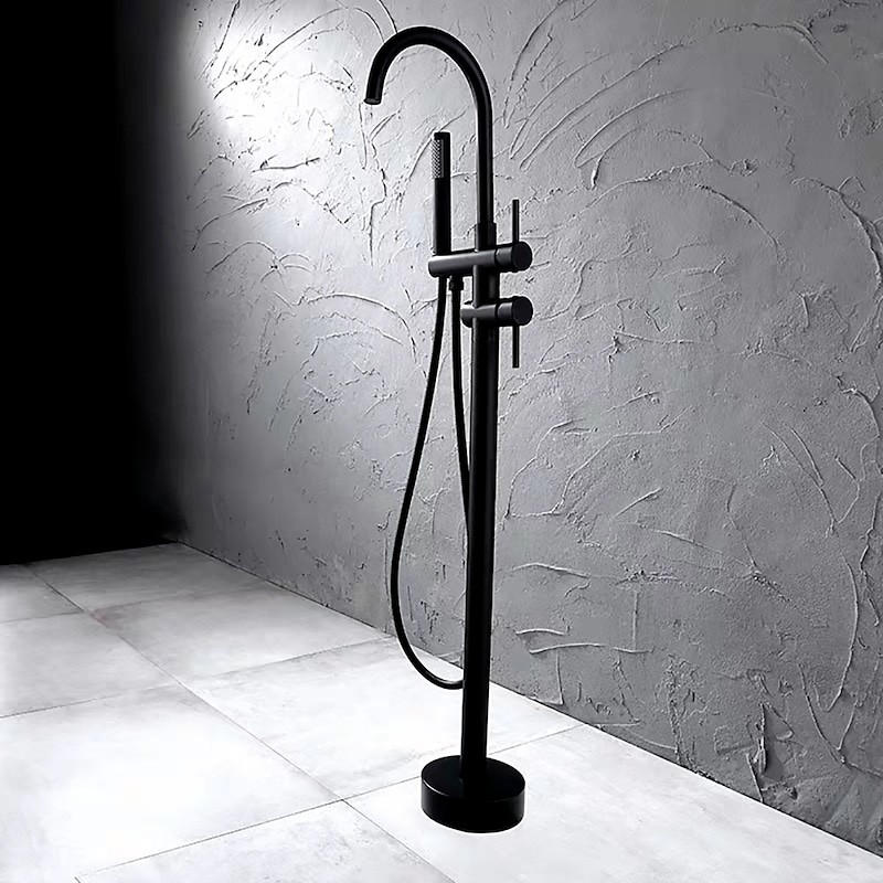 Black Free Standing Two Handles Rotatable Spray Shower Tap Painted Finishes Bathtub Tap