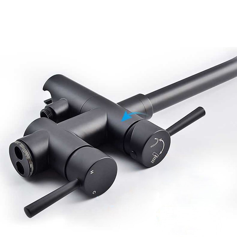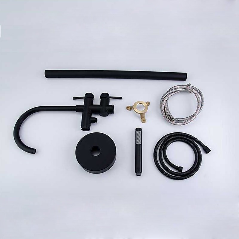 • Black Free Standing Two Handles Rotatable Spray Shower Tap Painted Finishes Bathtub Tap