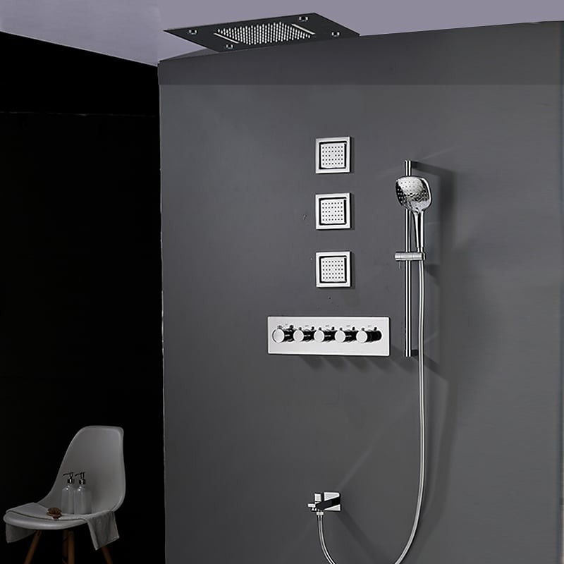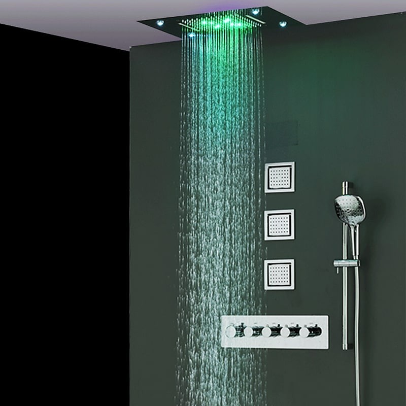 Complete Solid Brass Hand Shower Ceiling Mounted Rainfall Shower Head Nozzle 3 Massage Body Jet Shower Tap Chrome LED Shower Tap