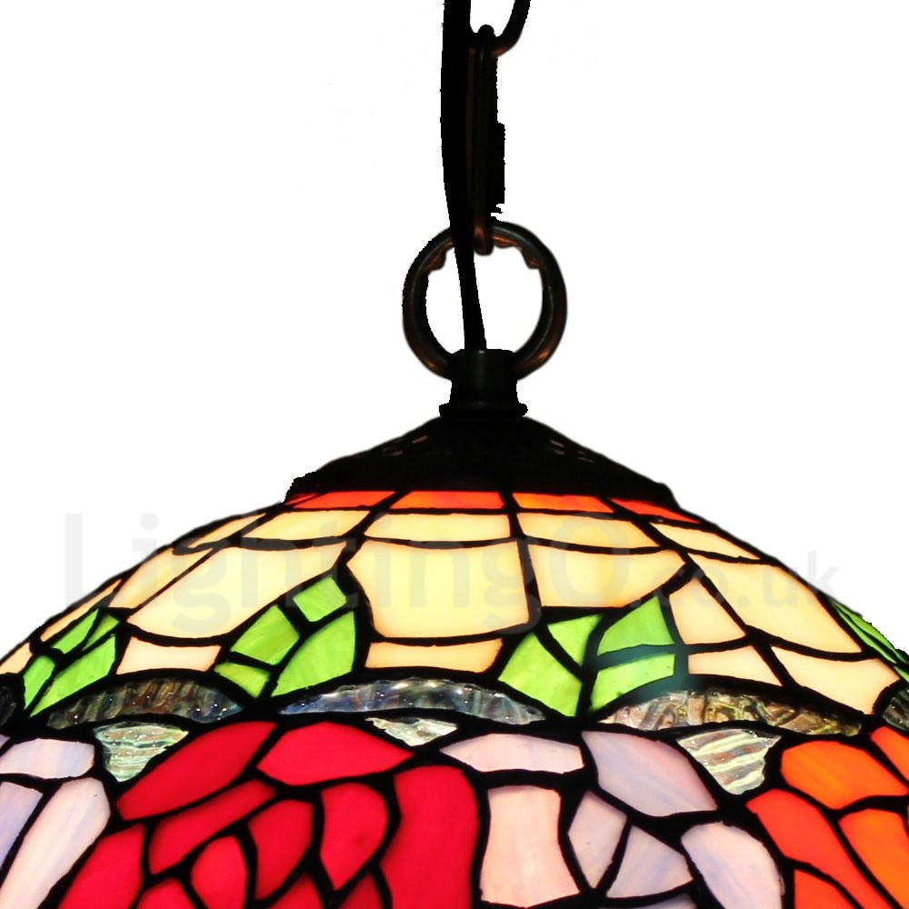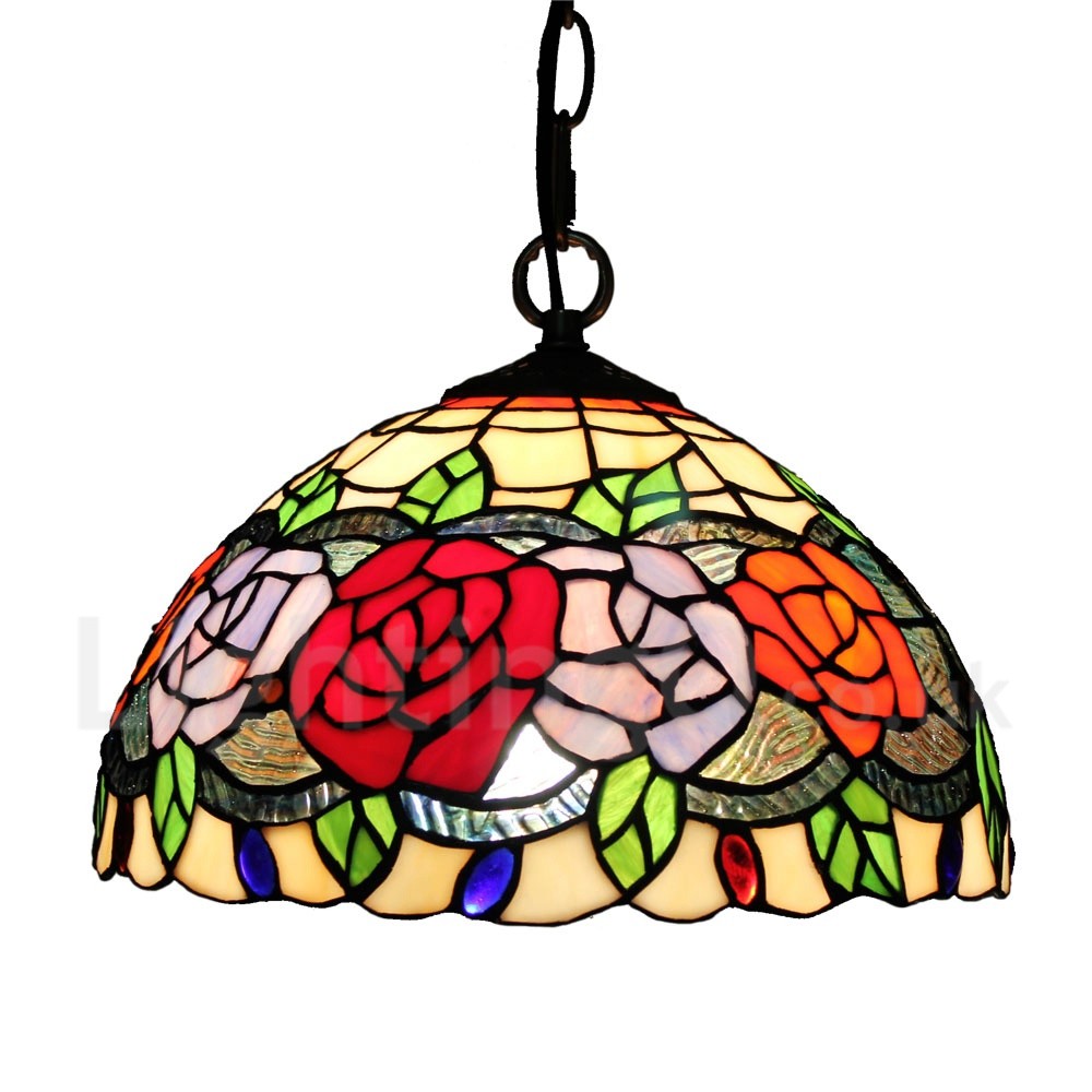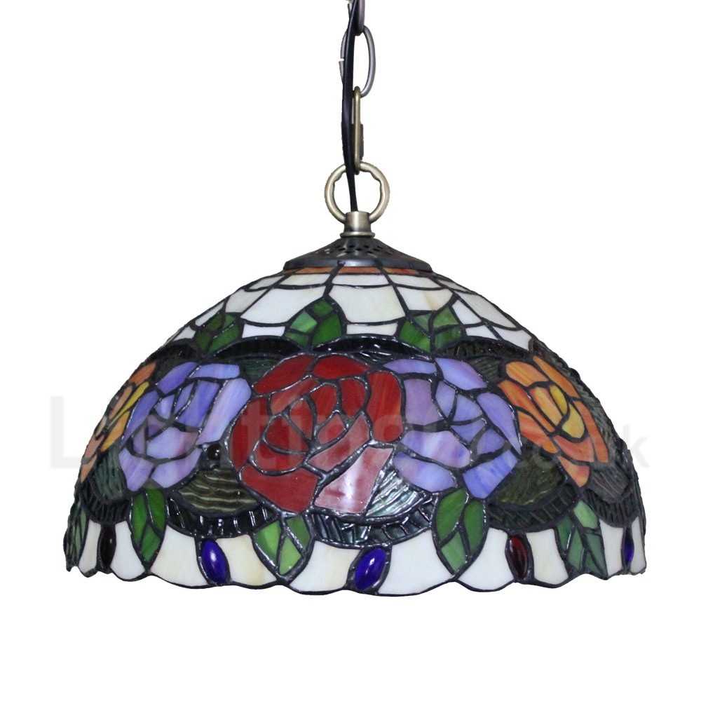 Diameter 30cm (12 inch) Handmade Rustic Retro Stained Glass Pendant Light Colorful Rose Pattern Glass Shade Bedroom Living Room Dining Room