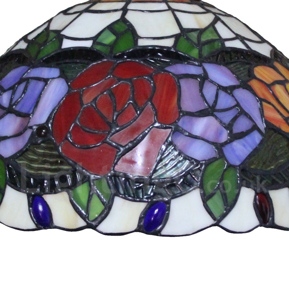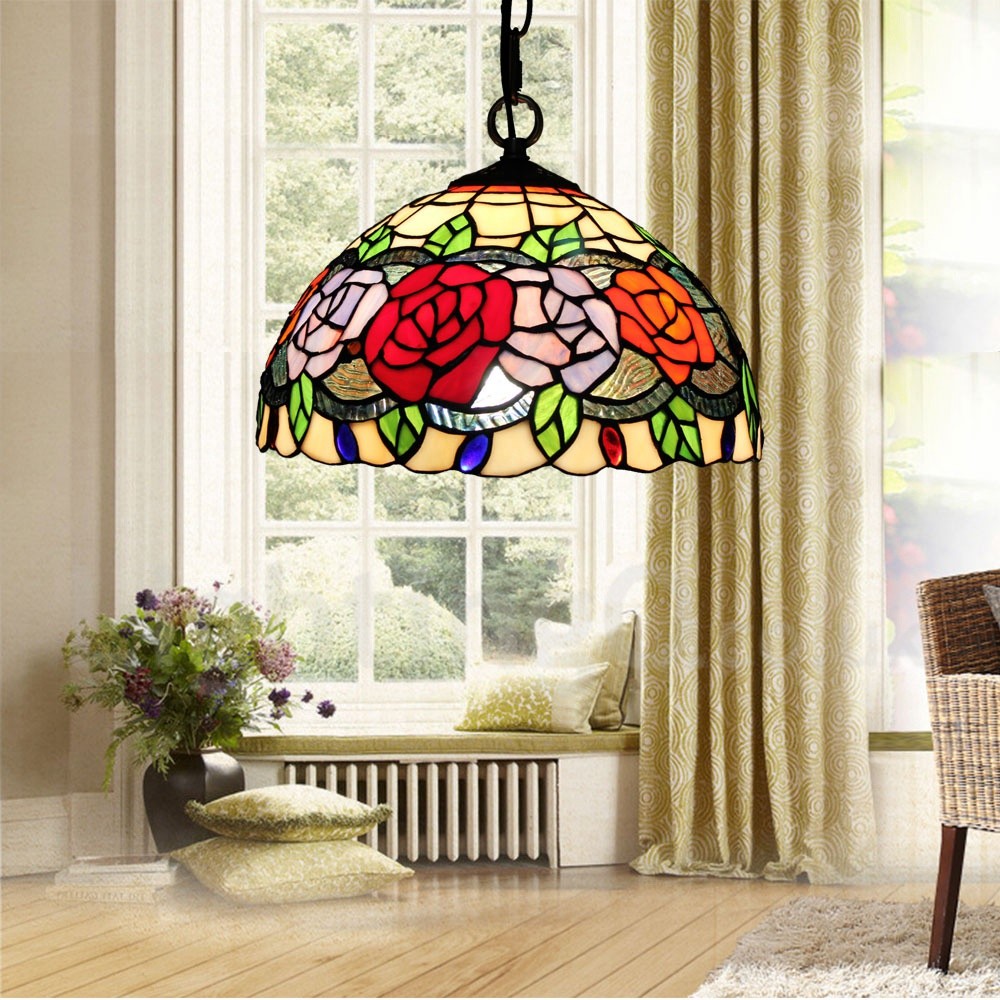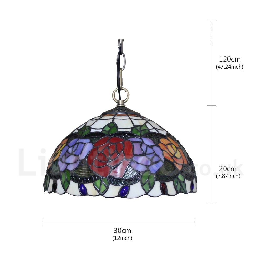 • Diameter 30cm (12 inch) Handmade Rustic Retro Stained Glass Pendant Light Colorful Rose Pattern Glass Shade Bedroom Living Room Dining Room