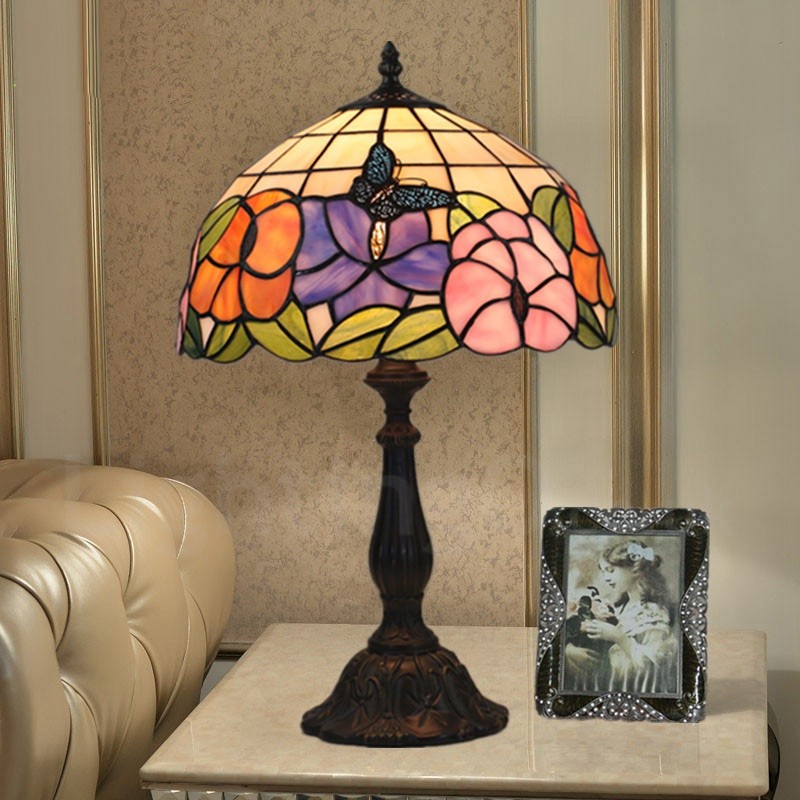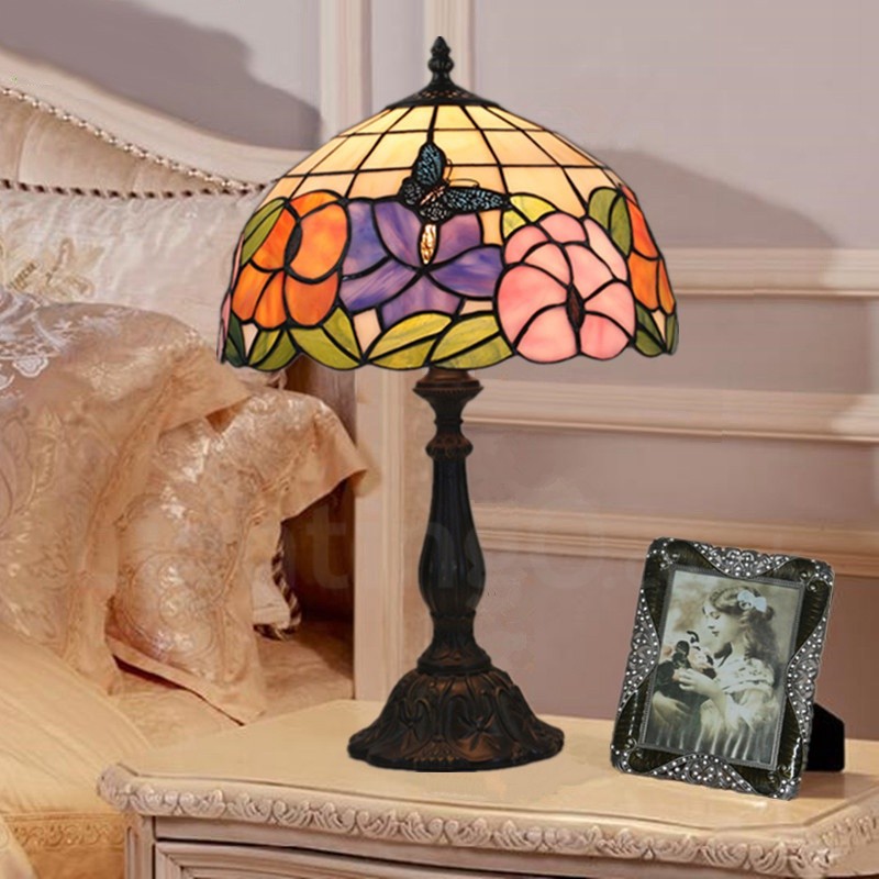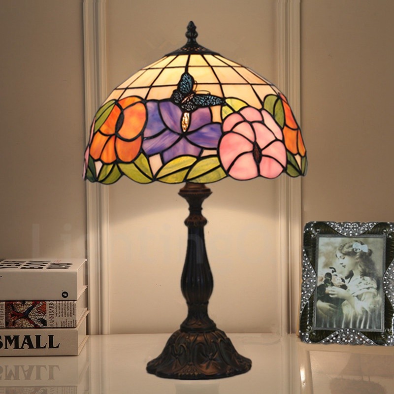 European Retro 12 inch Handmade Stained Glass Table Lamp Living Room Bedroom Study Room 1 Lamp Sunflower Butterfly Lamp Shade
