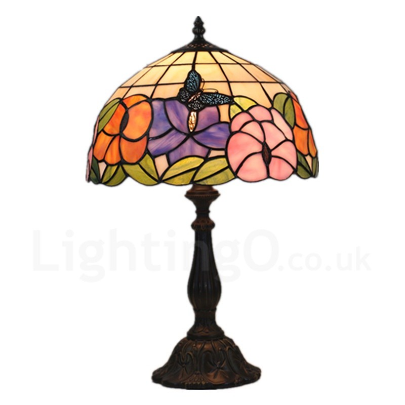 • European Retro 12 inch Handmade Stained Glass Table Lamp Living Room Bedroom Study Room 1 Lamp Sunflower Butterfly Lamp Shade