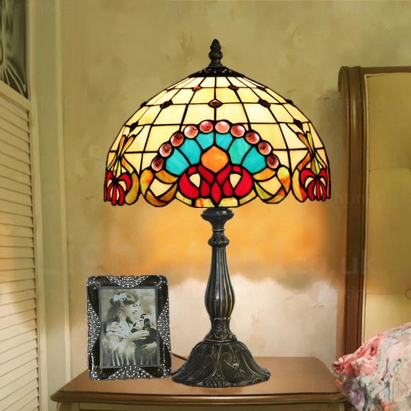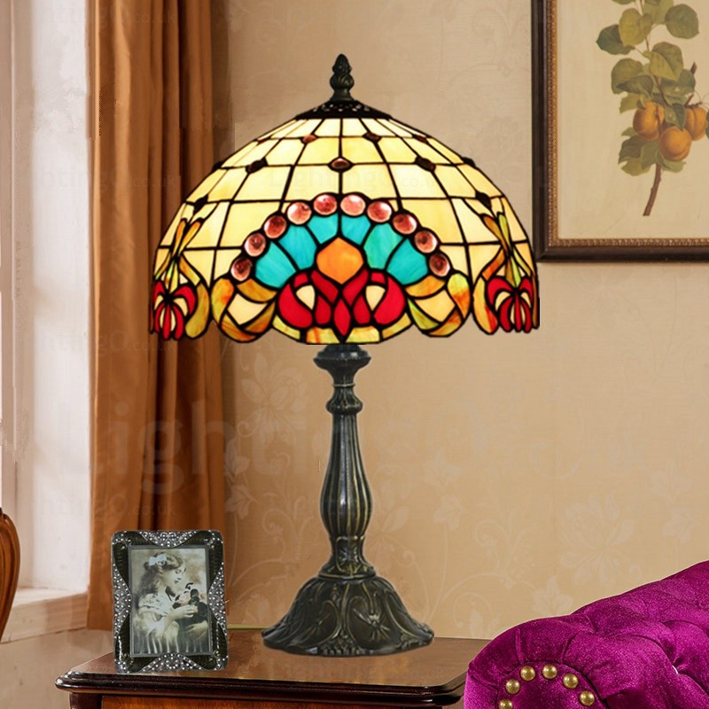 Baroque Lamp Shade Retro 12 inch Stained Glass Desk Lamp Living Room Bedroom Study Room