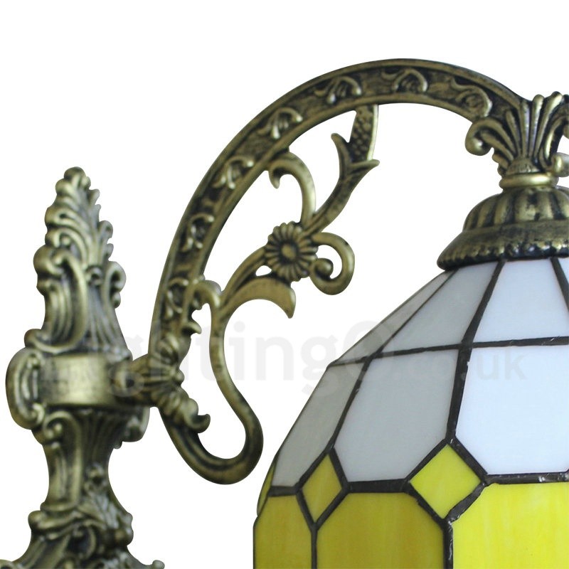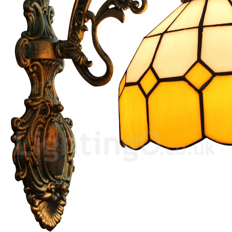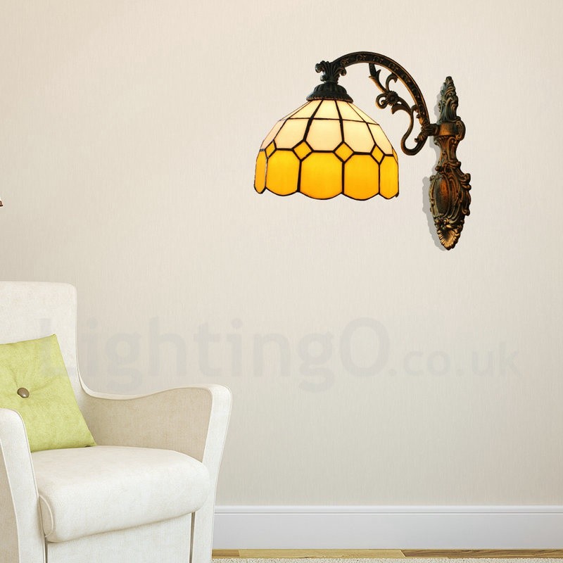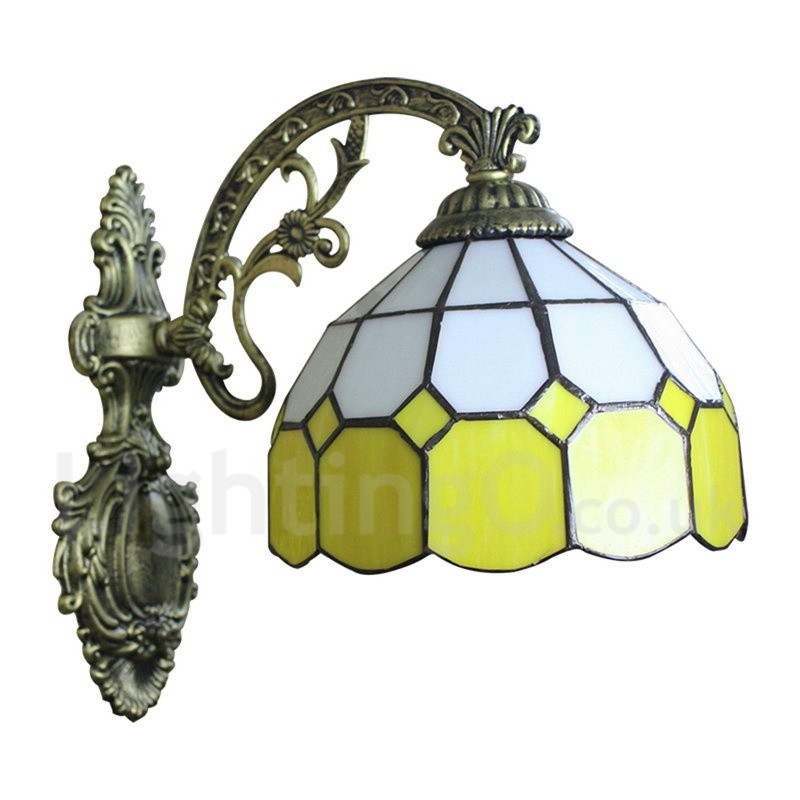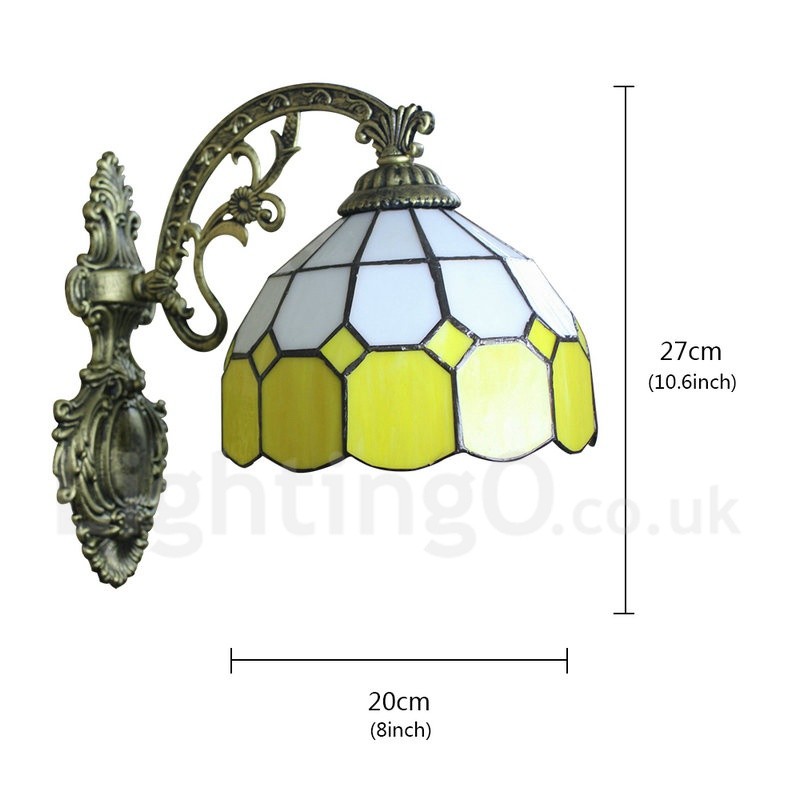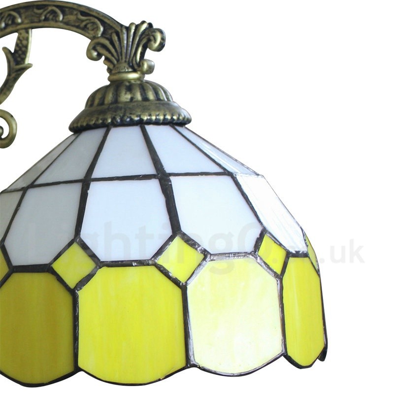 Diameter 20cm (8 inch) Handmade Rustic Retro Stained Glass Wall Light Yellow and White Shade Bedroom Living Room Dining Room