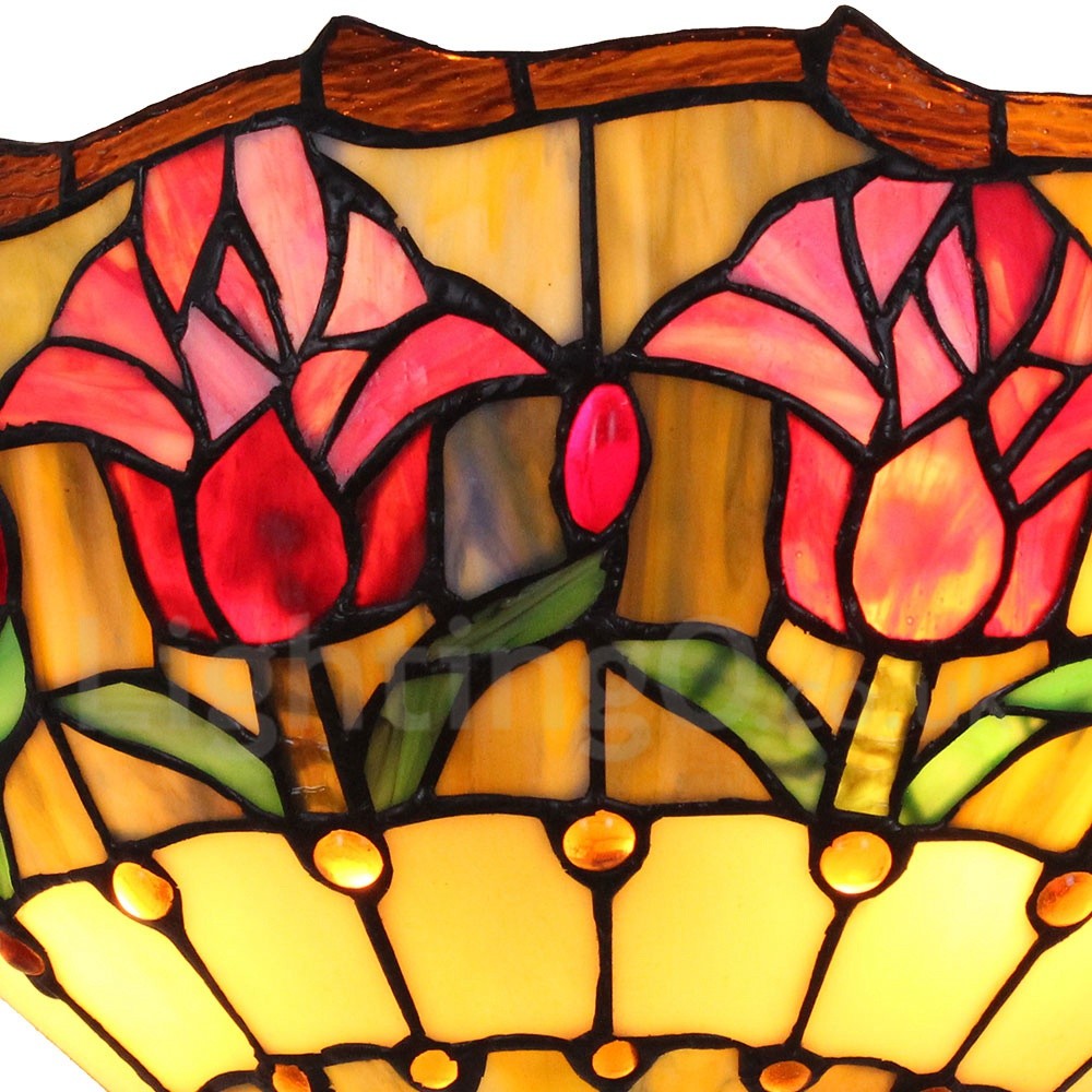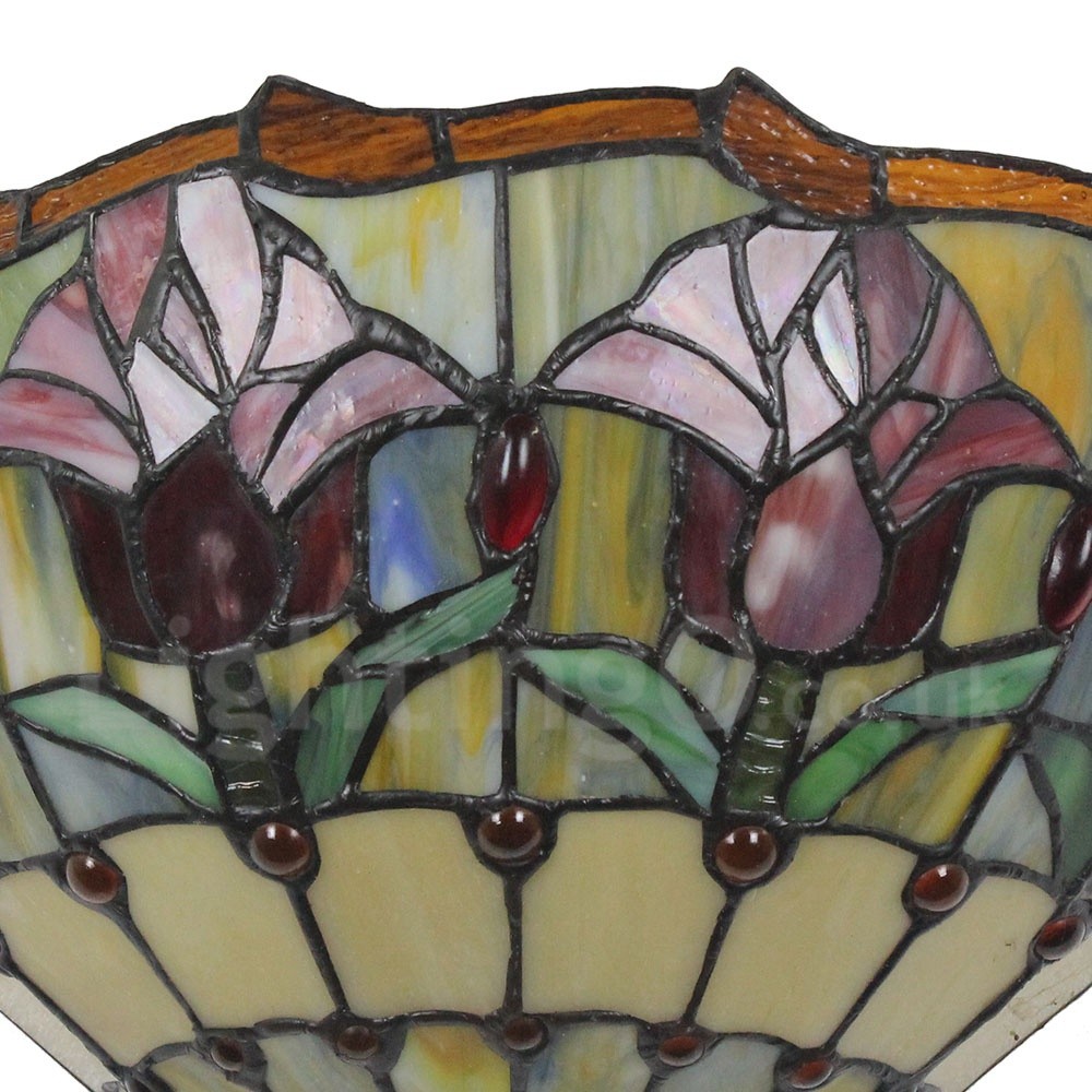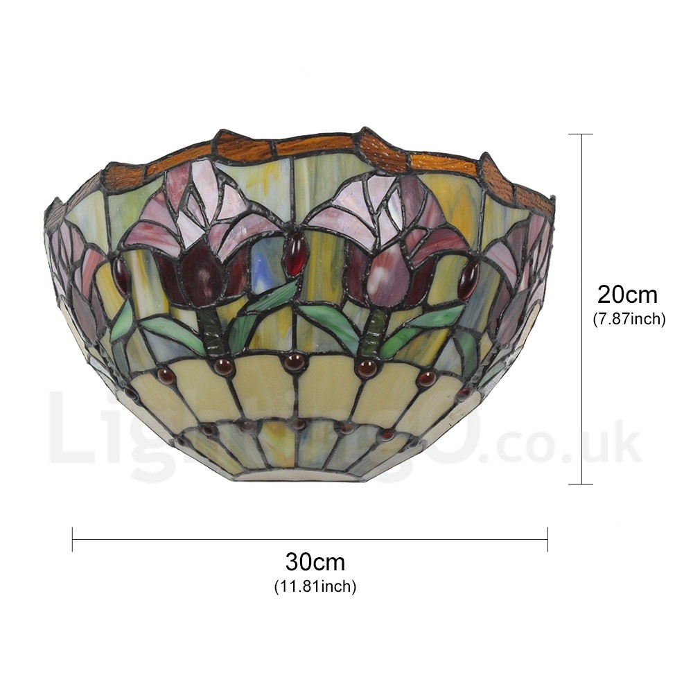 • Diameter 30cm (12 inch) Handmade Rustic Retro Stained Glass Wall Light Colorful Flower Pattern Shade Bedroom Living Room Dining Room