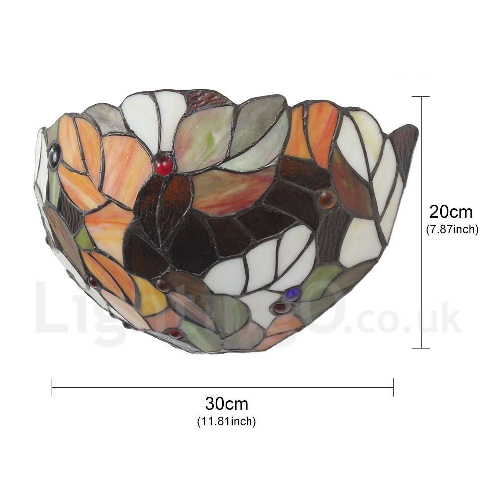 Category Stained Glass Wall LightStyle European Pastoral RetroCraft Manual grinding, welding,coloured drawingColor MulticolorSuggested Room Fit Living Room,Dining Room,Bedroom,Kitchen and cafesSuggested Room Size 8-12OFixture Material MetalShade Material GlassShade Measurement 12inchFixture Measurement 30*14*20cm(11.81*5.51*7.87inch)Bulb Base E26/E27Number Of Lights 1Wattage MAX 60WVoltage 110-120V/220-240VBulb Included or Not Bulb Not IncludedLead Time 3-5 Days