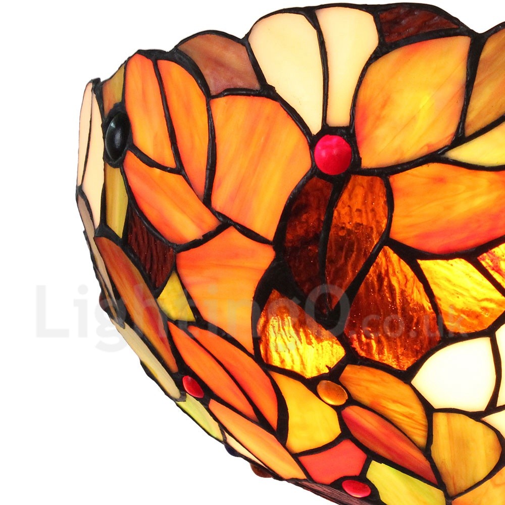 • Diameter 30cm (12 inch) Handmade Rustic Retro Stained Glass Wall Light Colorful Leaves Pattern Shade Bedroom Living Room Dining Room
