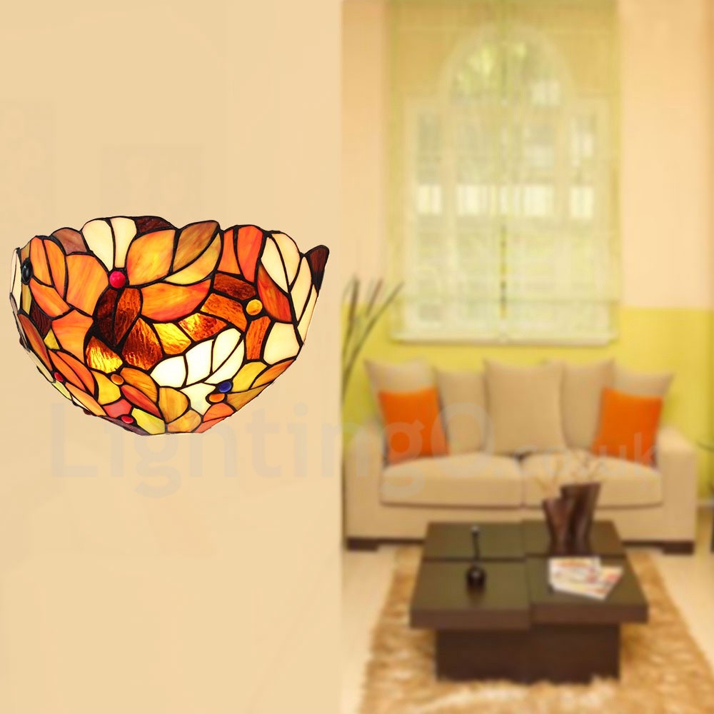 Diameter 30cm (12 inch) Handmade Rustic Retro Stained Glass Wall Light Colorful Leaves Pattern Shade Bedroom Living Room Dining Room