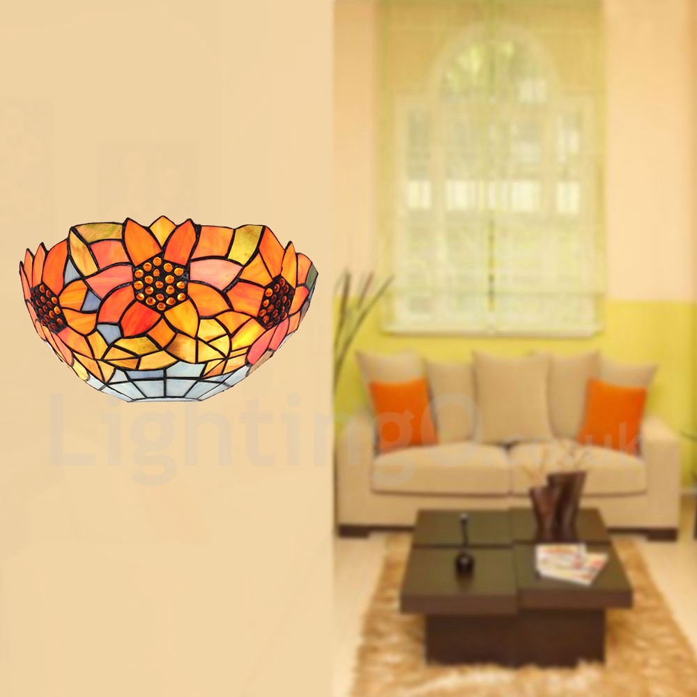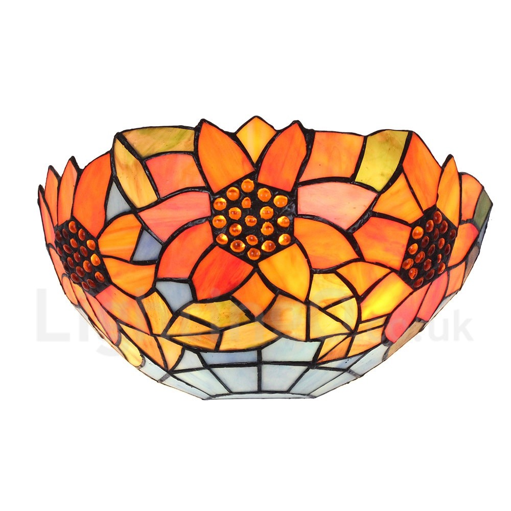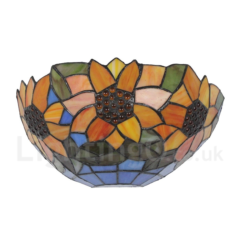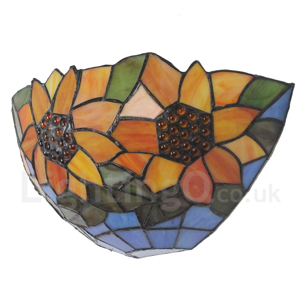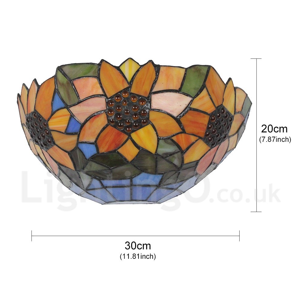 Diameter 30cm (12 inch) Handmade Rustic Retro Stained Glass Wall Light Sunflower Pattern Shade Bedroom Living Room Dining Room