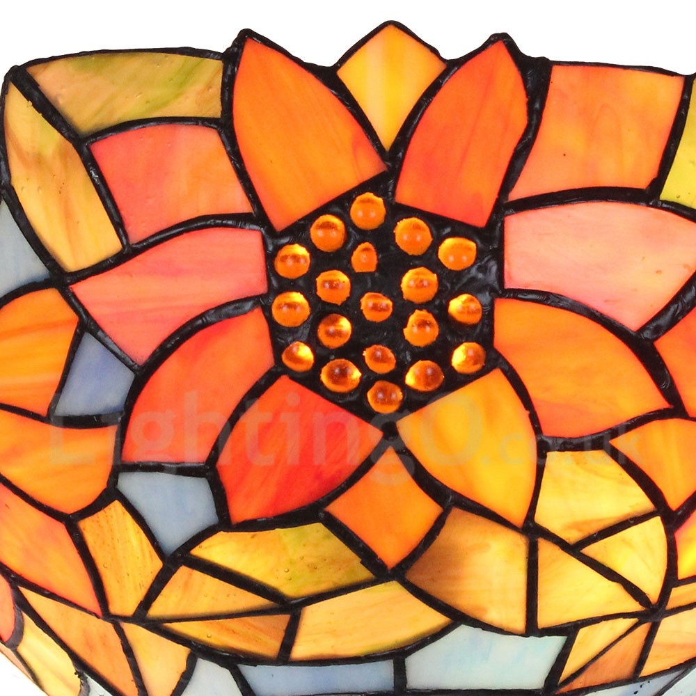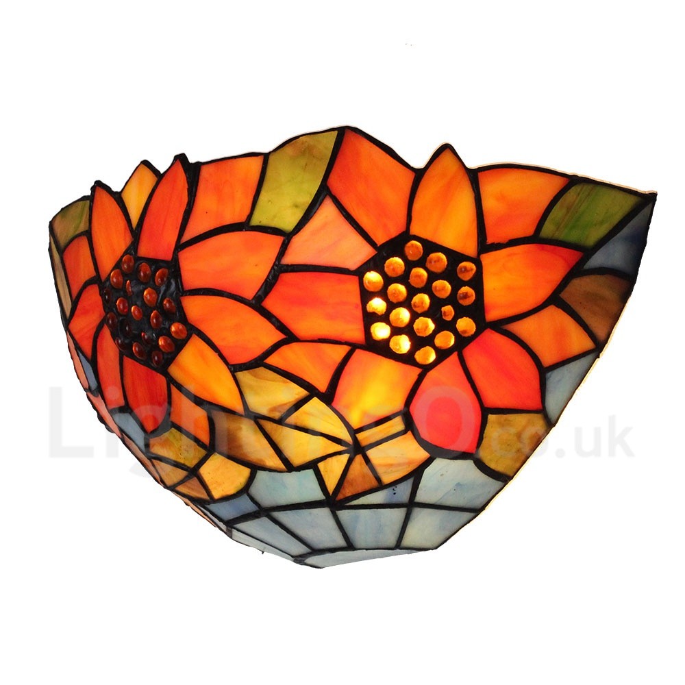 • Diameter 30cm (12 inch) Handmade Rustic Retro Stained Glass Wall Light Sunflower Pattern Shade Bedroom Living Room Dining Room